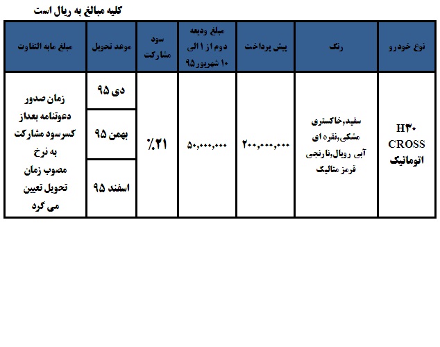 شرایط پیش فروش این خودرو در جدول زیر قابل مشاهده است: