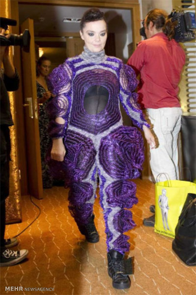 بیورک گومندسودواتیر که با نام بیورک شناخته می‌شود، آهنگساز، خواننده و ترانه‌سرای اهل ایسلند است که البته در چند فیلم هم بازی کرده است. لباس بنفش و عجیب او را در تصویر می‌بینید.