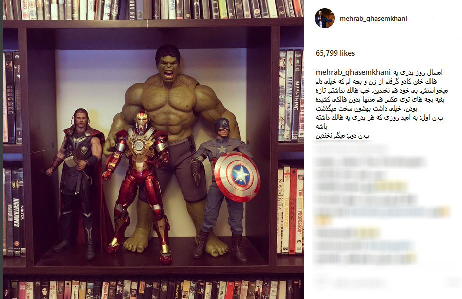 امسال روز پدری یه هالک خفن کادو گرفتم از زن و بچه ام که خیلی دلم میخواستش. بی خود هم نخندین. خب هالک نداشتم. تازه بقیه بچه های توی عکس هم مدتها بدون هالکی کشیده بودن، خیلی داشت بهشون سخت میگذشت