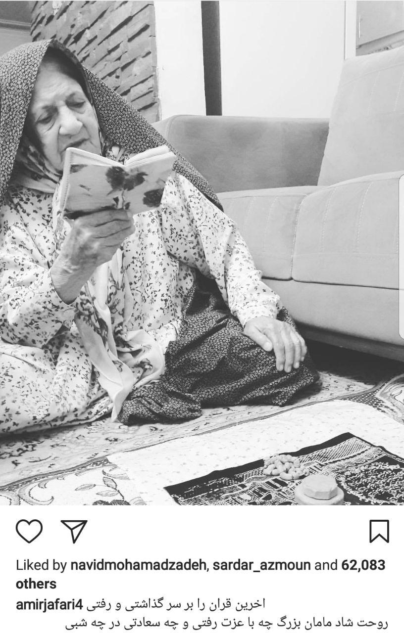 به گزارش«پرشین خودرو»، امیر جعفری با انتشار عکسی از مادربزرگ خود در اینستاگرامش نوشت: