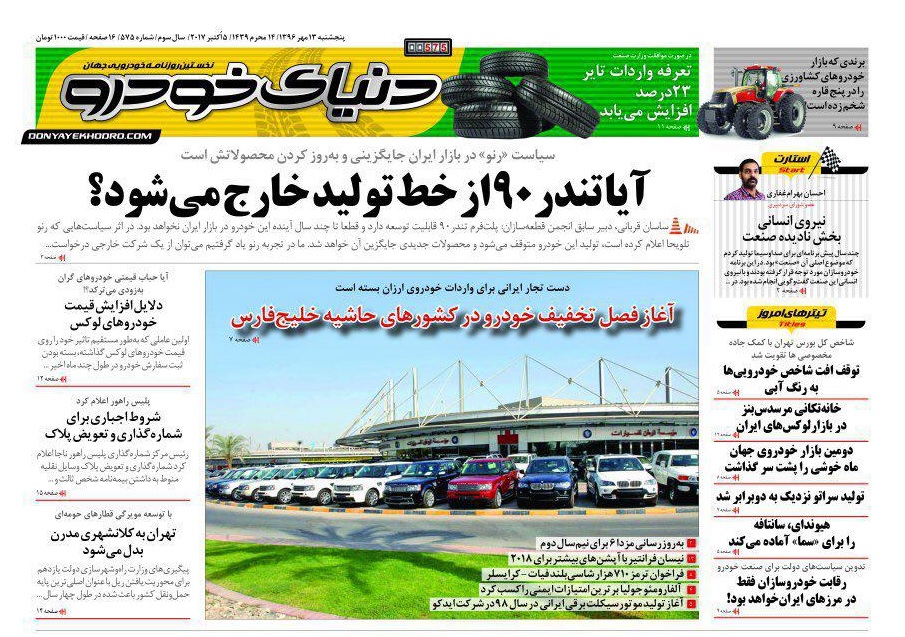 آخرین روز هفته با نگاهی به روزنامه ی «دنیای خودرو»+صفحه اول