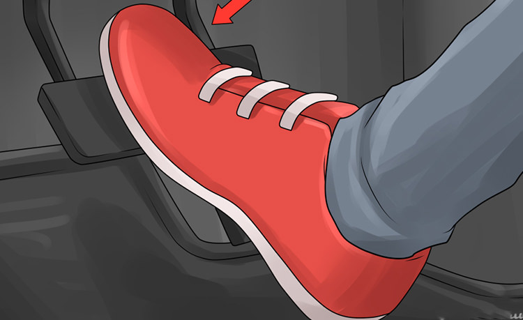 فشار از بخش پایینی پنجه و قبل از قوس کف پا، به مرکز پدال ترمز وارد شود