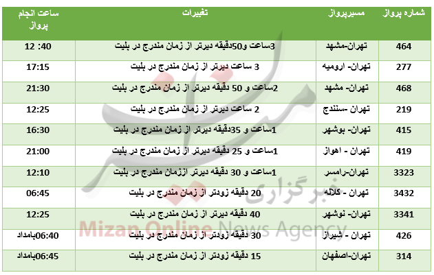 **پروازهای خروجی از فرودگاه مهرآباد