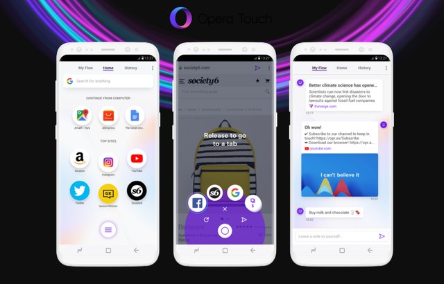 یکی دیگر از ویژگی های جدید اوپرا تاچ، قابلیت flow است که این امکان را به کاربران می دهد تا محتوای موردنظر خود را از یک وب سایت به پلتفرم یک وب سایت یا پیام رسان دیگر منتقل کرده و آن را مطالعه کنند.