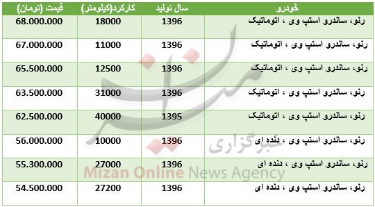 پرشین خودرو: برای خرید ساندرو استپ وی اتوماتیک مدل ۱۳۹۶ با کارکرد ۱۸ هزار کیلومتر به سرمایه ۶۸ میلیون تومانی نیاز است.