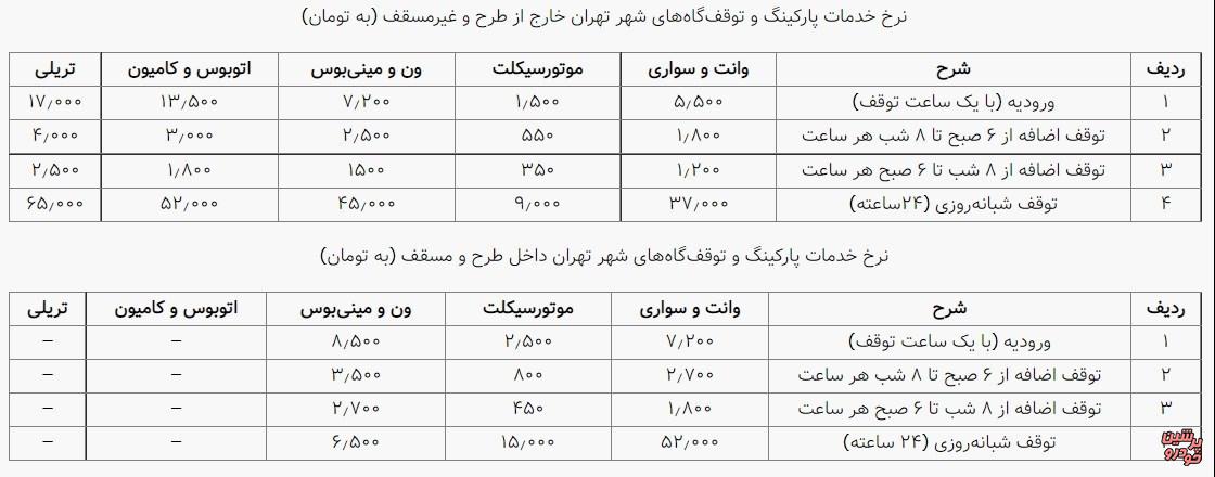 گفتنی است نرخ مصوب پارکینگها و توقفگاههای شهر تهران به شرح زیر است: