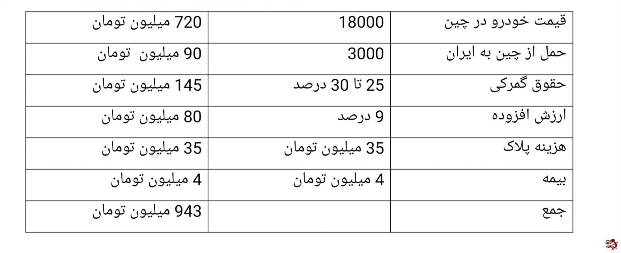 در جدول زیر قیمت خودرو در چین با احتساب دلار 40 هزار تومانی محاسبه شده است؛ طبق این محاسبات یک خودرو 18 هزار دلاری باید اکنون 943 میلیون تومان به فروش رود این در حالیست که فیدلیتی گروه بهمن با قیمت 845 میلیون تومان به فروش می رسد.
