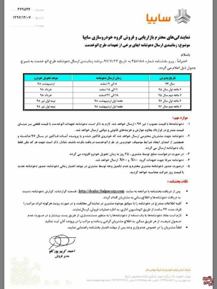 پرشین خودرو: گروه خودروسازی سایپا، زمان صدور و ارسال دعوتنامه طرح اتوخدمت این شرکت را اعلام کرد.
