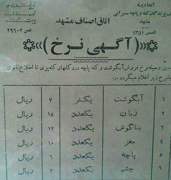 https://persiankhodro.com/xFWh۲۴ تیر ۱۳۹۶ - ۰۹:۳۰ کد مطلب 76649 آرشیو اخبار قیمت کله پاچه در43سال پیش+عکس کد مطلب 76649 ۲۴ تیر ۱۳۹۶ - ۰۹:۳۰ پرشین خودرو: کله پاچه از غذاهای محبوب ما ایرانی ها به ویژه برای صبحانه است. به گزارش«پرشین خودرو»، قیمت آبگوشت و کله پاچه در شهرمشهد در سال 1353 شمسی. منبع: مشرق کد مطلب 76649