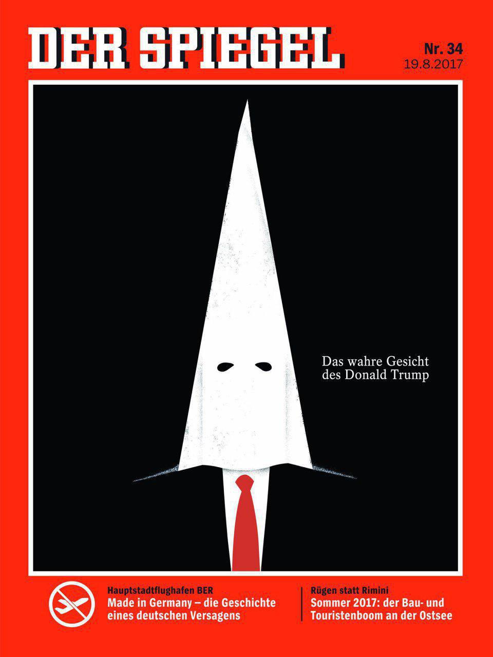 به گزارش«پرشین خودرو»، طرح روی جلد جدیدترین شماره نشریه «دِر اشپیگل» آلمان با کلاه نژادپرستان بر سر دونالد ترامپ.