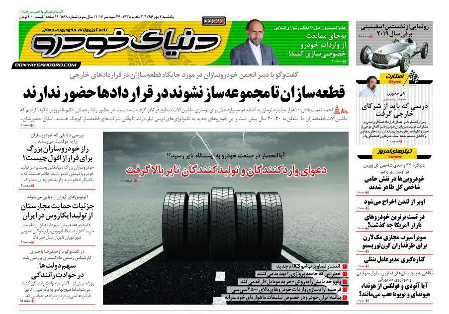 نیم نگاهی به روزنامه ی دنیای خودرو+صفحه اول
