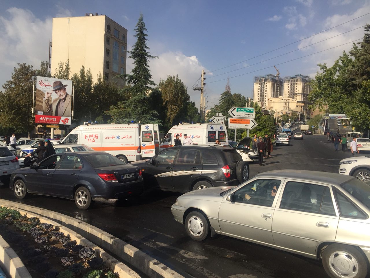 تصادف زنجیره‌ای ۷ دستگاه خودرو در میدان دانشگاه ولنجک
