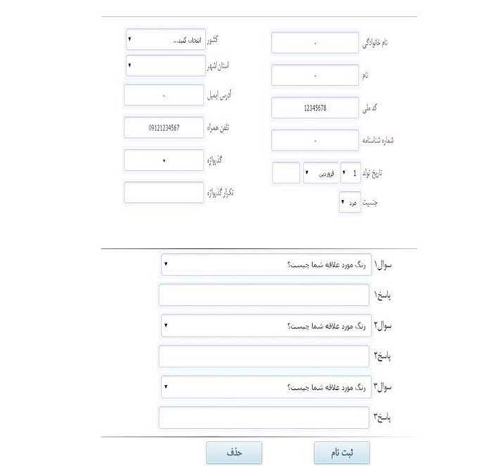 در کادرهای پایین اطلاعات خواسته شده را پر کنید: