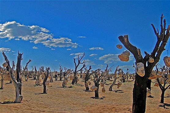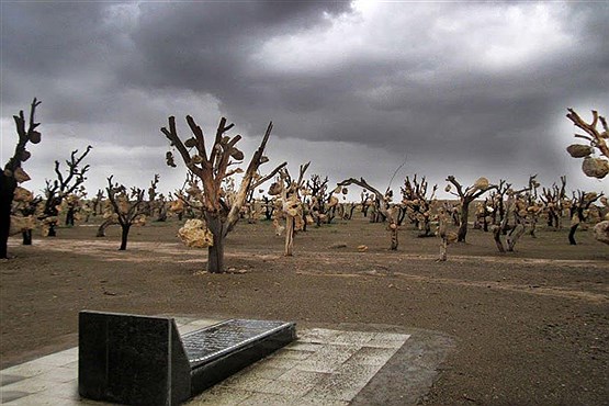 در نگاه اول شاید این باغ جالب و شگفتانگیز به نظر برسد ولی با قدم زدن در میان درختان خشک که میوههای آن از جنس سنگ هستند، وحشت در دل شما ایجاد میشود. این باغ سنگی «باغ درویش خان» نامیده میشود و سازنده آن مزرعهداری به نام «درویشخان اسفندیار پور» است که حدود ۴۰ سال پیش پس از خشک شدن مزرعهاش، حالت طبیعی خود را از دست داد و به نشانه اعتراض درختان باغش را که دیگر خشک شده بودند، در جای دیگر کاشت و سنگهایی را که از کوه های اطراف جمع کرده بود، بهعنوان میوه درختانش به آنها آویزان کرد.