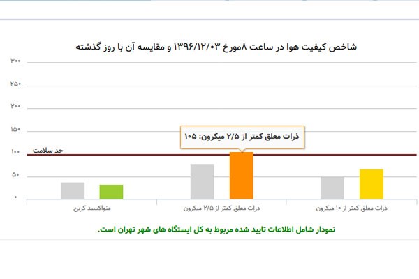 براساس این گزارش، اگر شاخص کیفیت هوا بین 0 تا 50 باشد کیفیت هوا در وضع پاک، 50 تا 100 وضع سالم و 100 تا 150 هوا ناسالم برای گروههای حساس (بیماران قلبی، ریوی، سالمندان و کودکان)، 150 تا 200 ناسالم برای تمام افراد جامعه و 200 تا 300 بسیار ناسالم خواهد بود.