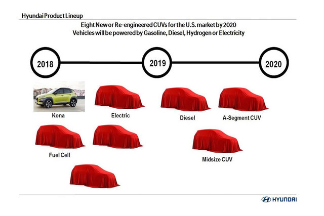 نخستین خودروی کراس اور این خودروساز کره ای، هیوندای کونا (Cona) بود که قرار است بعد از آن، به تدریج مدل های دیگری نیز به بازار بیایند. این مدل ها به طور قطع، علاوه بر تفاوت در طراحی و شکل ظاهری، در قابلیت ها و دسته بندی های متفواتی نیز عرضه خواهند شد.