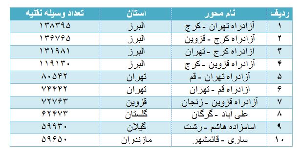 تردد انواع تریلر و کامیون در ساعات و تاریخ‌های ذیل در این محور‌ها ممنوع است: