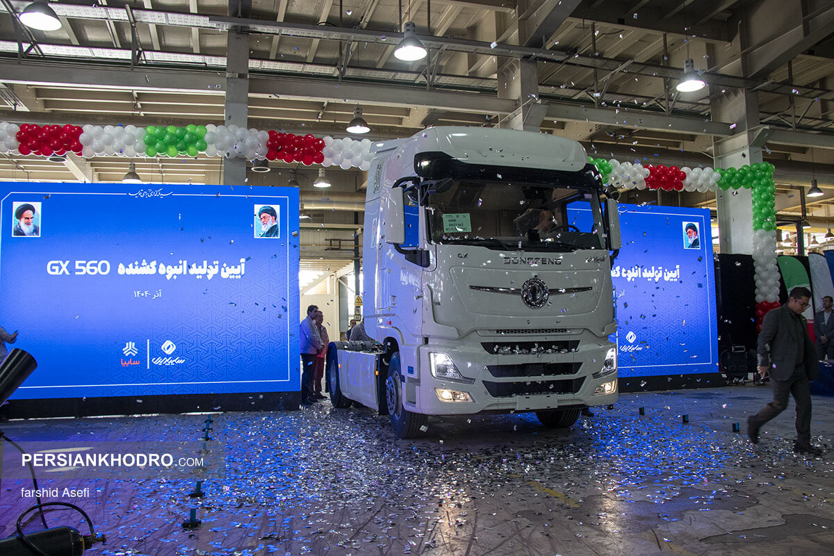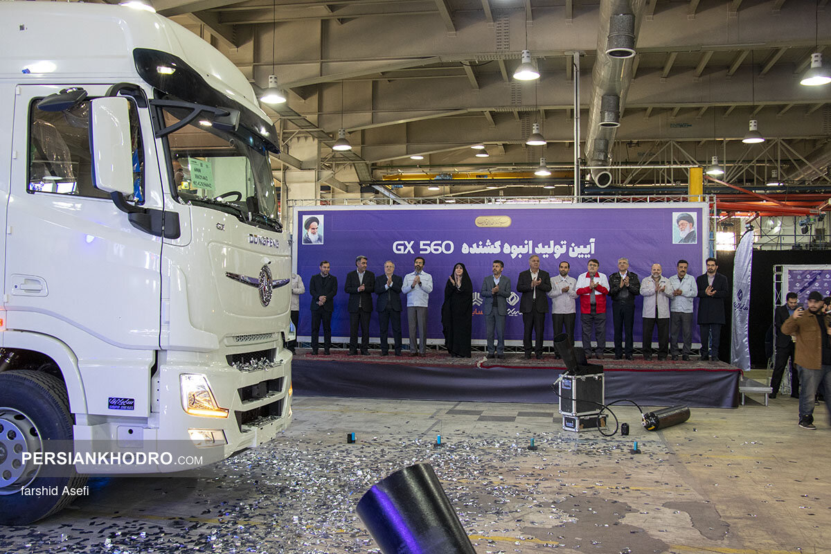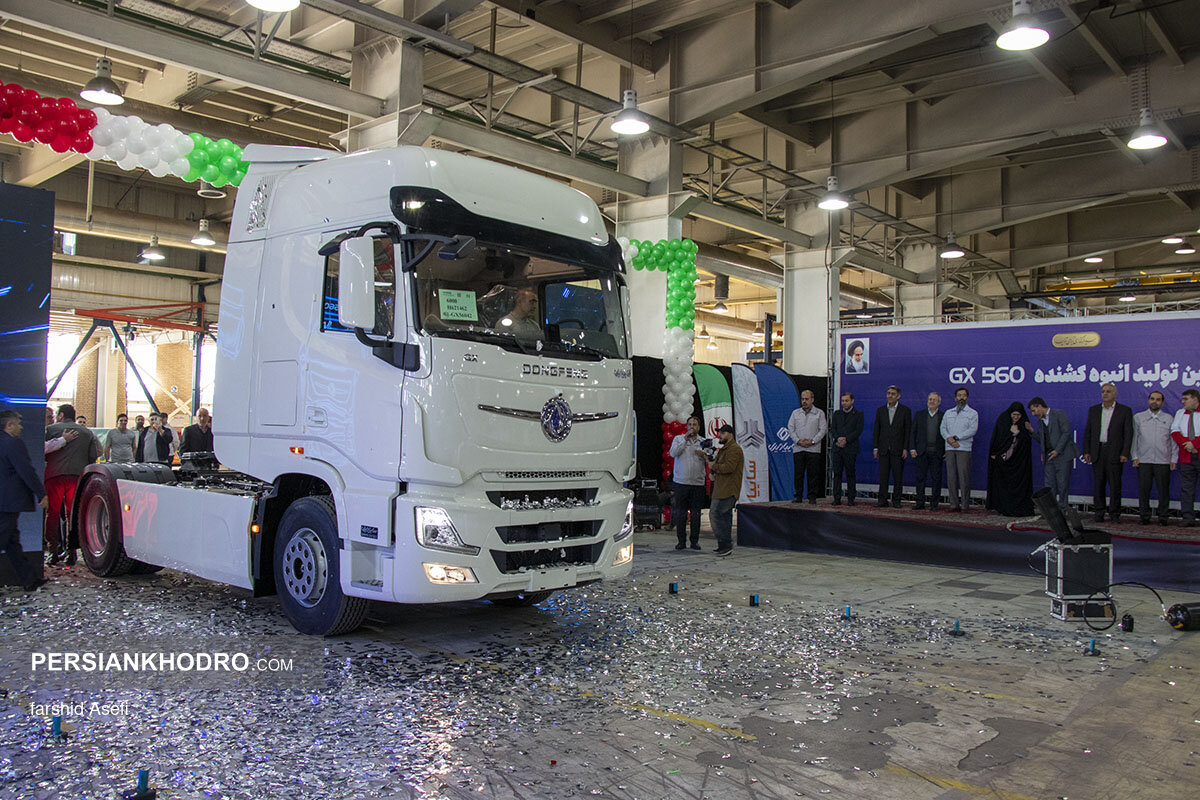 گزارش تصویری از افتتاح خط تولید انبوه کشنده دانگفنگ GX ۵۶۰ در شرکت سایپا دیزل با حضور مدیران ارشد سایپا، رئیس پلیس راهور و نمایندگان مجلس.